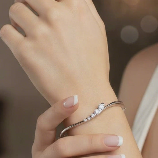 Delightful silver curling waves bangle