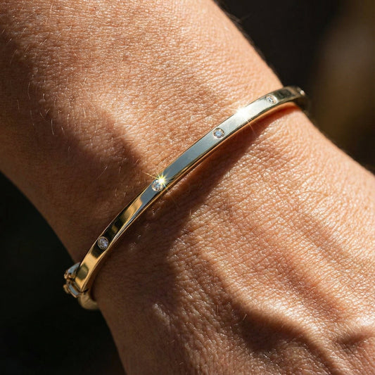 9ct yellow Gold Classic Diamond Hinged Bangle