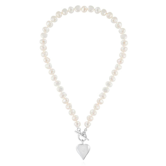 Claudia Bradby Silver signature heart white pearl long necklace|Rock Lobster