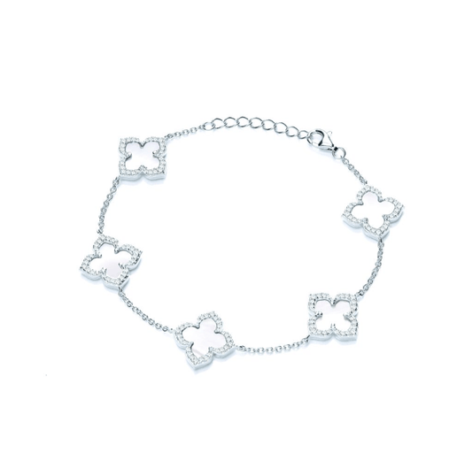 Mother of Pearl Vintage Lucky Clover Bracelet in Silver