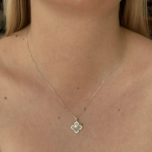Mother of Pearl Vintage Lucky Clover Necklace in Silver