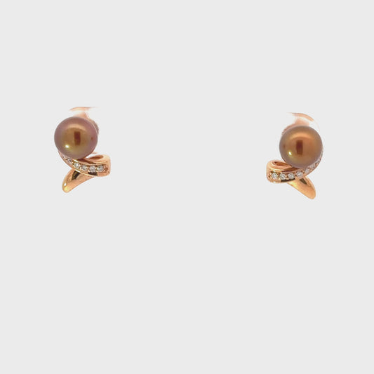 14ct Rose gold & chocolate pearl earrings with a twist of diamonds