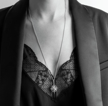 Radiant with celestial allure, the North Starburst Necklace from this exclusive winter 2025 collection commands the spotlight as a true statement piece. This striking pendant features an eight-pointed star lavishly adorned with Pavé-Set Cubic Zirconia, complemented by eight radiating star bursts behind for a mesmerising 16-point sparkle effect. The generously proportioned design hangs from an elegant Pavé-set bale and glides smoothly along a 16–24" adjustable slider chain, allowing you to wear it close to the collarbone or as a dramatic drop pendant. Crafted in sterling silver with symbolic depth and timeless elegance, this necklace is both a powerful personal statement and an exceptional gift for those who appreciate refined, celestial-inspired jewellery.